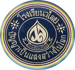 รูปหยดน้ำ มีอักษร ว.ล. ภายในรูปหยดน้ำเป็นสัญลักษณ์ประจำพระองค์สมเด็จพระศรีนครินทรบรมราชชนนี ในวงกลม มีคติพจน์ปัญญาเป็นแสงสว่างในโลก เปรียบเสมือนโรงเรียนเป็นกงล้อที่จะหมุนนำพาให้นักเรียนพบกับแสงสว่างแห่งปัญญา